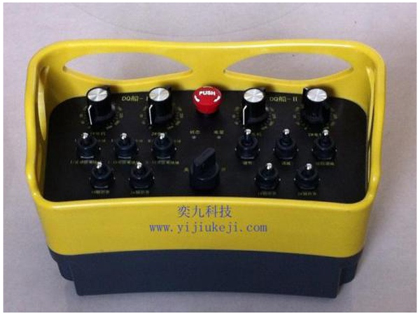 YJB-0100-4020船舶無(wú)線遙控器,Ⅰ#船5個(gè)Ⅱ#船2個(gè)動(dòng)作撥子開(kāi)關(guān),3個(gè)輸出調(diào)節(jié)撥子開(kāi)關(guān),Ⅰ#船Ⅱ#船各2個(gè)旋鈕電位器,為2路模擬量輸出及Ⅰ#船6路Ⅱ#船3路開(kāi)關(guān)量繼電器輸出型遙控器